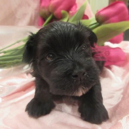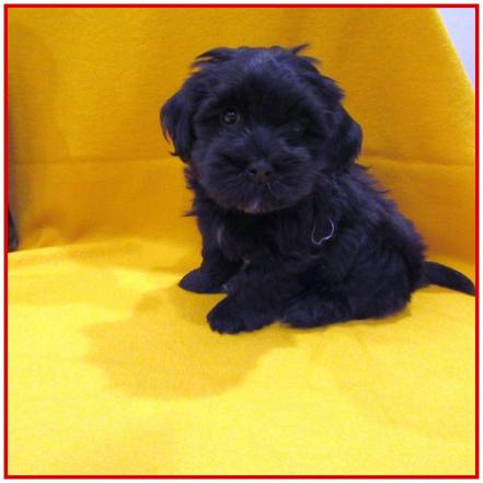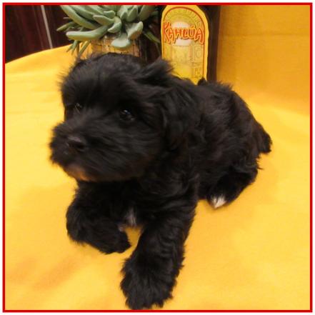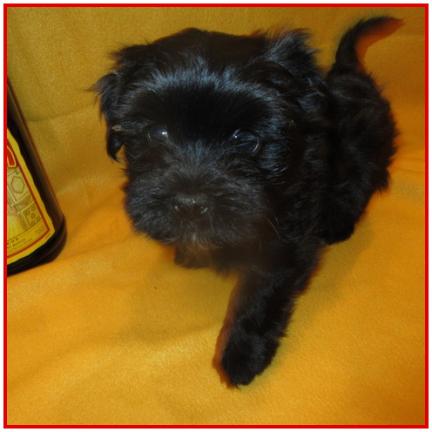 | Nothing could be cuter than 7 week old Havanese puppies running around the room. They get so excited when I let them out to run around and play and explore. What a site to see. They are so quick that I have to make sure when I walk, that none of them run in front of me and cause me to trip. They have such soft wavy black coats now that it is hard to resist constantly petting them. I added another platform in their ex pen to play on and give them the exercise and experience of walking up and down steps. They have just begun eating totally solid food now. They still would much rather have mom's milk to drink, but Kahlua has the final word on that and most of the time it is NO, to their disappointment. When they are running around loose Kahlua tries to play with them, but before long they start trying to nurse, and that ends the play with her for them, as she will quickly jump up on the couch to escape the puppies sharp teeth and nails. |