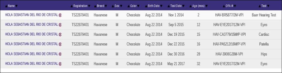 | Sabastian's Parent's OFA / CERF RECORDS |